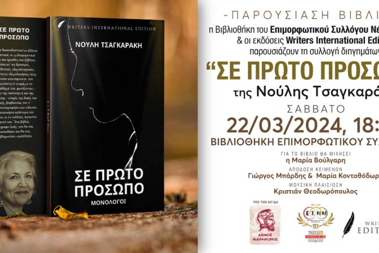 Παρουσίαση συλλογής διηγημάτων της Νούλης Τσαγκαράκη το Σάββατο, 22/3/2025 (18:30) στη Βιβλιοθήκη του ΕΣΝΜ
