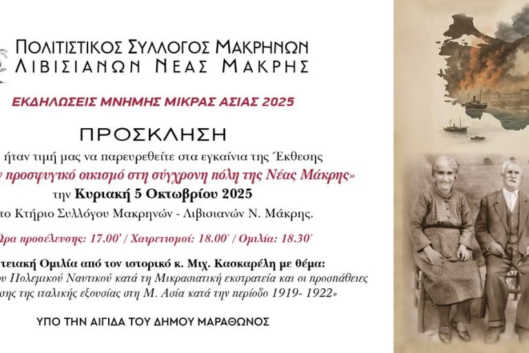 Έκθεση του Συλλόγου Μακρηνών – Λιβισιανών για τη Νέα Μάκρη, την Κυριακή, 5-10-2025