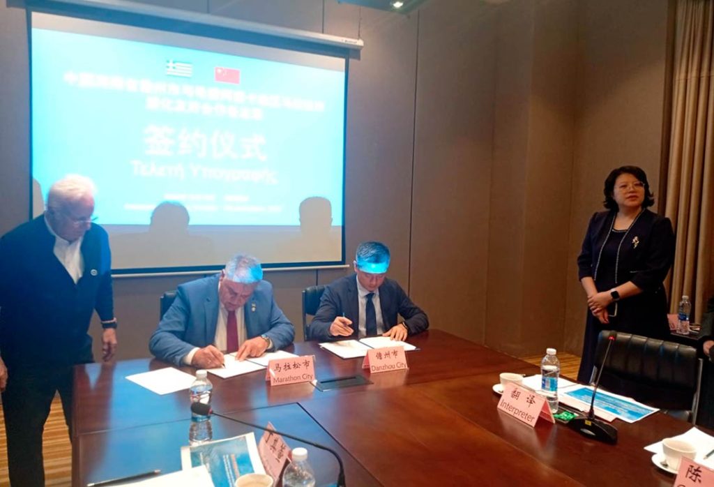 Κατά τη διάρκεια της επίσκεψης υπογράφηκαν σύμφωνα συνεργασίας με την Danzhou, για θέματα αθλητισμού, όπως και με την επαρχία Hebei των 75.000.000 κατοίκων, για θέματα σχετικά με τον αθλητισμό και το Μουσείο Μαραθωνίου Δρόμου, το οποίο είχε πέρυσι επισκεφθεί πολυμελής αντιπροσωπεία της πόλης Henan, που ανήκει στα διοικητικά της όρια.