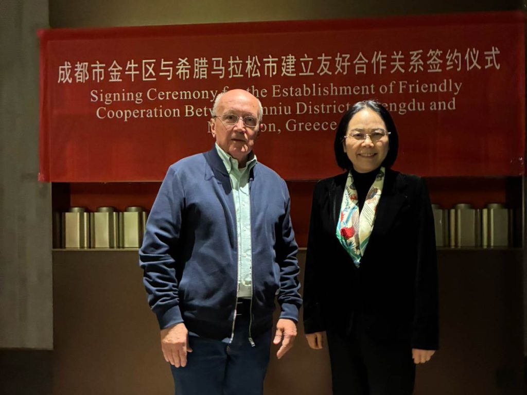 Η Chengdu επιθυμεί να αναπτύξει σχέσεις συνεργασίας με το Δήμο Μαραθώνος και προς το σκοπό αυτόν, ο Δήμαρχος, Στέργιος Τσίρκας, υπέγραψε σχετικόσύμφωνο αμοιβαίας αντίληψης με την κ. Σι Μπεϊμπέι, διευθύντρια της Επιτροπής Ευρωπαϊκών Υποθέσεων της Chengdu. Παρών ήταν επίσης και ο κ. Λι Μινγκ, αναπληρωτής διευθυντής της Επιτροπής Διεθνών Σχέσεων της πόλης. Ο κ. Τσίρκας είχε επίσης επαφές με ανώτερους αξιωματούχους του κεντρικού διοικητικού διαμερίσματος της Chengdu, Jinniu, πληθυσμού 1.265.000 κατοίκων.