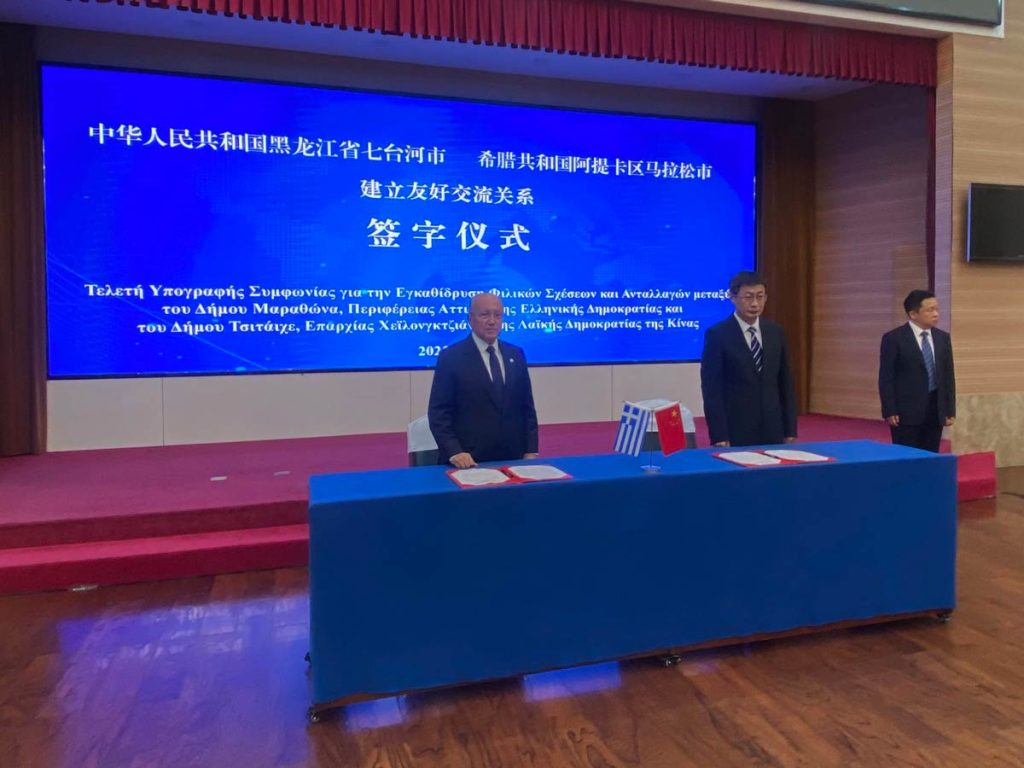 Σημαντικές ήταν οι επαφές που είχε ο Δήμαρχος Μαραθώνος και στην πόλη Harbin,πρωτεύουσα της επαρχίας Heilongjiang, των 35.000.000 κατοίκων. Η Harbin, των 10.000.000 κατοίκων θεωρείται η πόλη με το πιο ευρωπαϊκό “χρώμα” στην Κίνα και είναι γνωστή για τους βαρείς χειμώνες της.