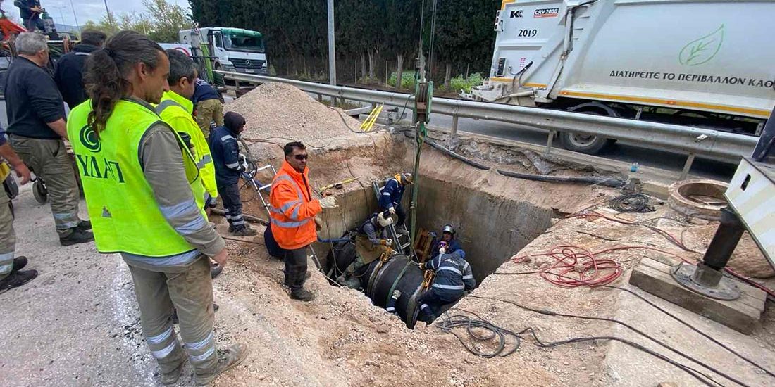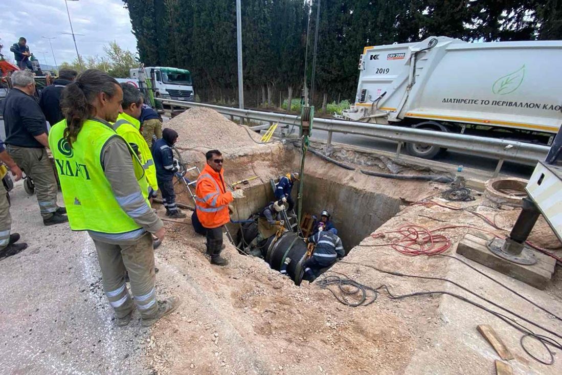 Οι εργασίες από την ΕΥΔΑΠ για την αποκατάσταση της βλάβης στον κεντρικό της αγωγό συνεχίζονται με εντατικούς ρυθμούς.